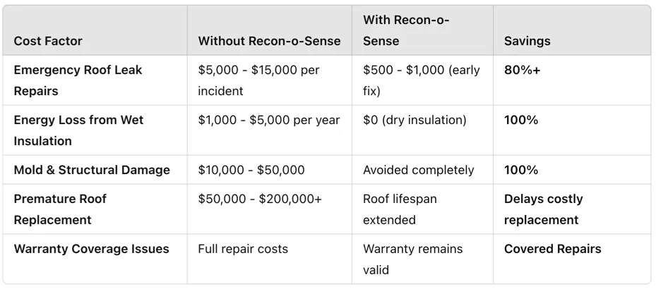 Every day you wait, hidden moisture could be damaging your roof—leading to thousands in repairs. Stay ahead of costly leaks with Recon-o-Sense.